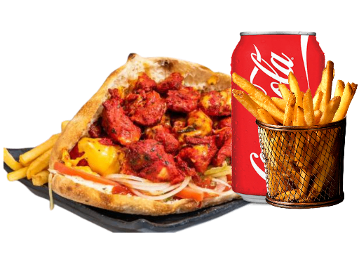 Haut De Cuisse De Poulet Frais Marine Au Paprika Poivrons Crudites Et Sauce Au Choix. Serviavec Des Frites.